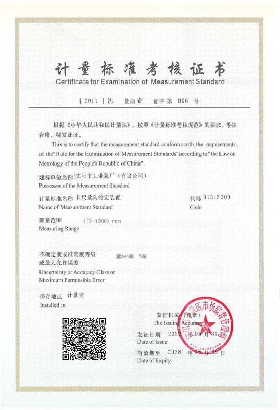 計量標(biāo)準(zhǔn)考核證書 卡尺…