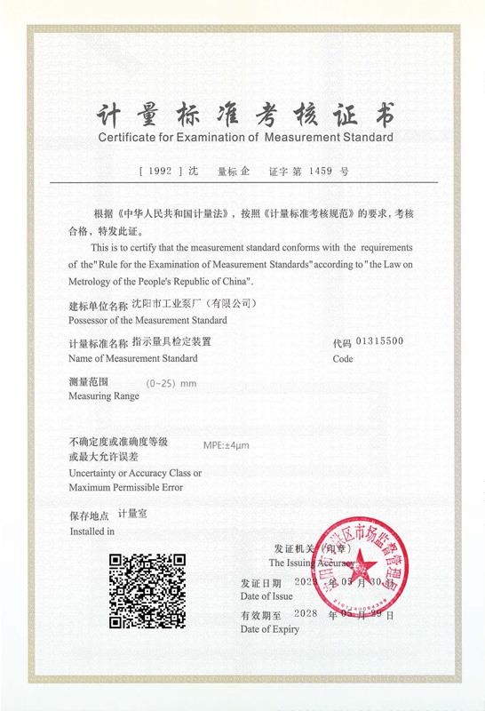 計量標(biāo)準(zhǔn)考核證書 測微…
