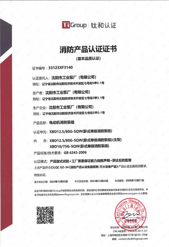 電動機消防泵組認證證書…